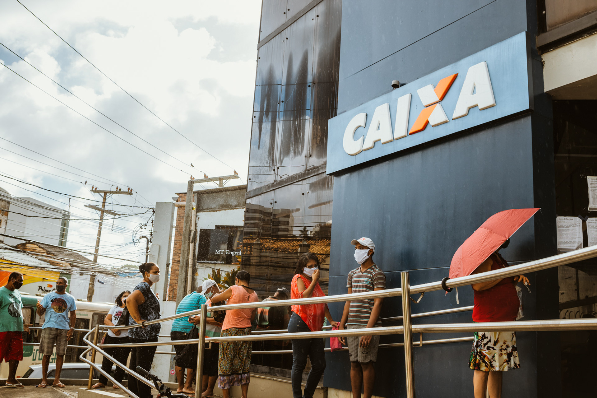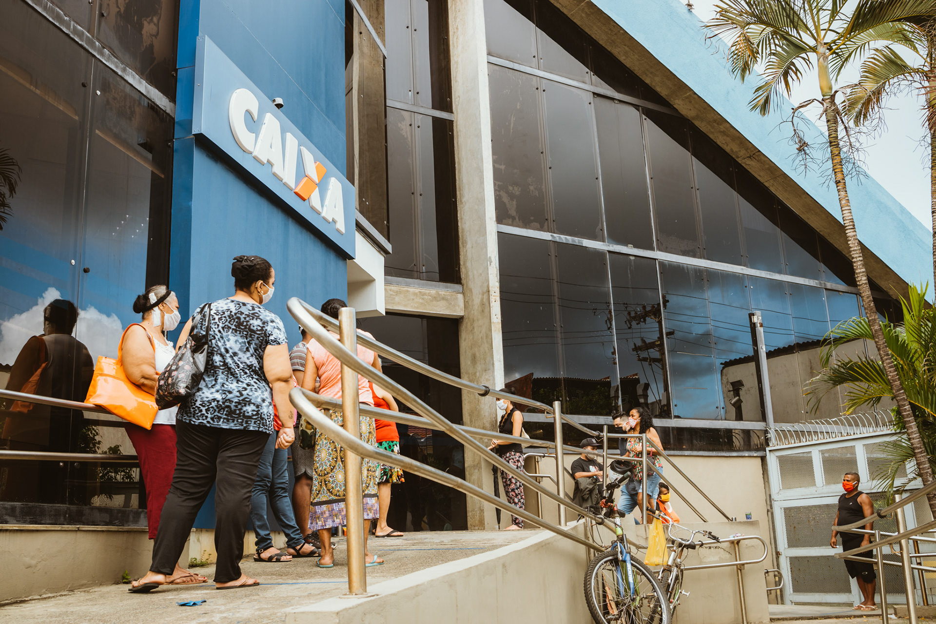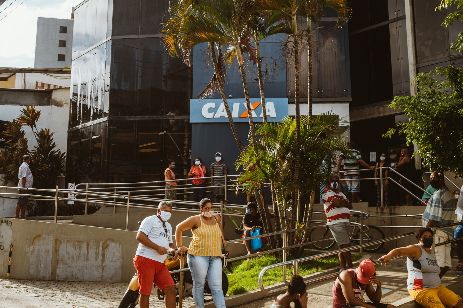 Em um sábado fotografei as grandes filas de pessoas na frente da Caixa na cidade de Salvador, no Rio Vermelho e na Pituba, que buscavam ainda a primeira parcela do auxilio.